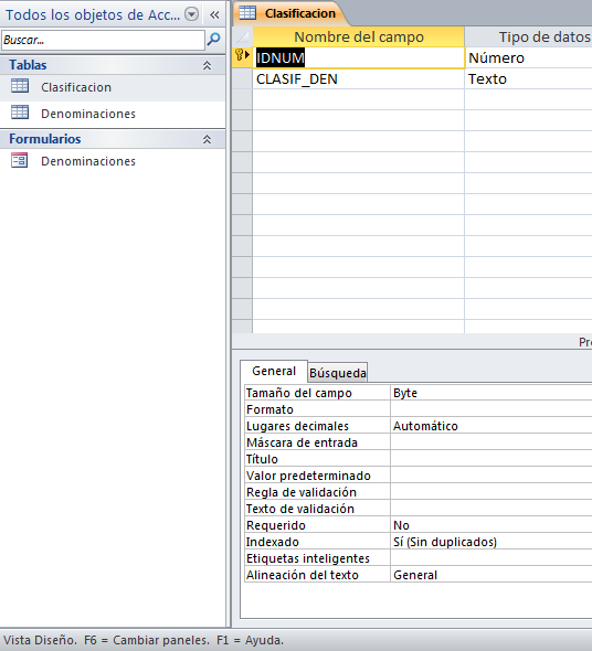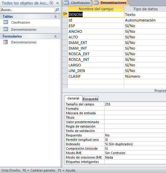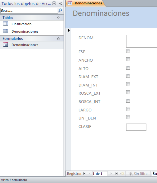 Formulario: Denominación (para cargar los registros de la tabla Denominación)