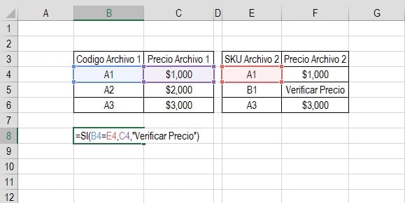 Si el código del producto en el archivo 1 es igual al SKU del producto en el archivo 2, entonces copiar el precio del producto del archivo 1 al precio del producto en el archivo 2.