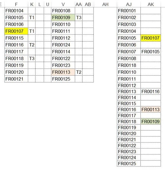 =SI.ERROR(SI(AL5<>"";INDICE($AJ$1:$AJ$25;SI(MAX(($AL$1:$AL$25=AL5)*($AJ$1:$AJ$25<>AJ5)*FILA($AJ$1:$AJ$25))=0;"";MAX(($AL$1:$AL$25=AL5)*($AJ$1:$AJ$25<>AJ5)*FILA($AJ$1:$AJ$25))));"");"")