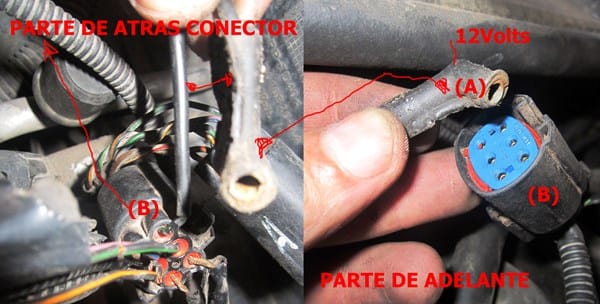 Hola tengo un ford ka 1.3 motor endura y queria saber donde va conectado este cable lo señale en la imagen como (A) es color negro ficha negra y tiene 12volts, como se ve en la imagen el cable (A) sale del conector de 6 entradas color azul osea el (B), pero no encontre a donde va conectado
