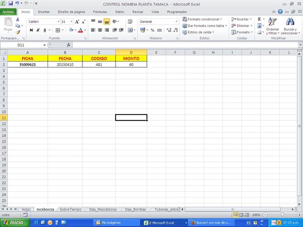 Aclarame además en qué col se encuentran en las distintas hojas: