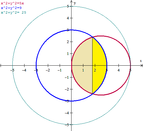 Es la circunferencia azul de radio 3 y el área en el plano z=c es la coloreada que se divide en dos zonas por la recta