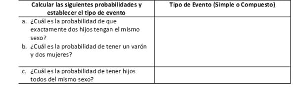 2. Plantear el espacio muestral considerando los posibles sexos de los hijos.