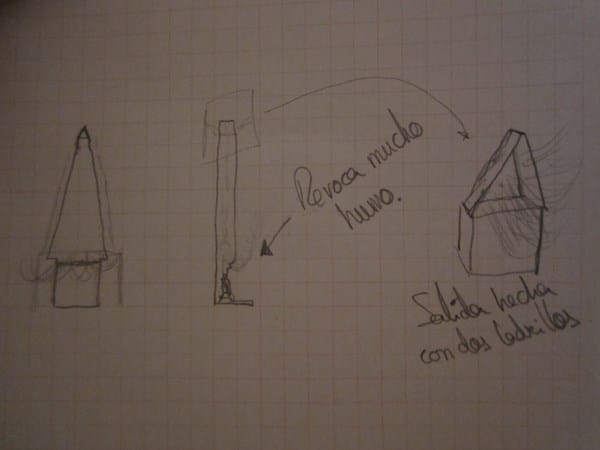 Estoy actualmente en una casa en la que hay una chimenea de obra y al intentar ponerla en marcha me he dado cuenta que revoca mucho humo. La dueña comenta que la chimenea iba relativamente bien hasta la última reforma que hizo en la que un "manacillas" por su propia cuenta le cambió el sombrerete por uno de obra. (dos ladrillos que forman un triángulo).