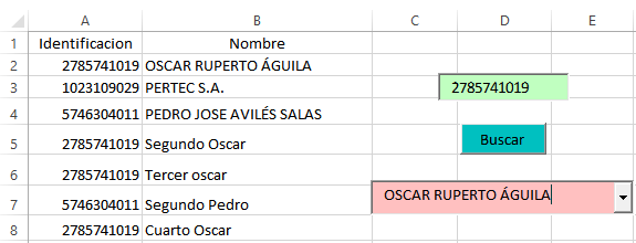 Necesito una macro que sea igual que el buscarv pero al encontrar la respuesta que salga las opciones que se encontró a partir de una base de datos del mismo libro pero en otra hoja, me explico con la siguiente ejemplo: