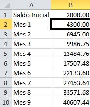 3.-. Si puedo hacer depósitos mensuales de $2, 000.00 mensuales y la tasa de interés de la institución donde quiero hacer los depósitos es de 15% con capitalización mensual ¿Cuánto acumularé en 9 meses?