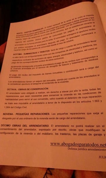Estoy alquilado en un piso, y se nos ha estropeado el calentador. La arrendadora nos ha dicho que corre de nuestra cuenta la reparación. Eso es así? Porque atendiendo al articulado del contrato y del Código Civil, yo estimo que sería una obra de conservación de la habitabilidad, y no pequeñas reparaciones. El contrato es un contrato estándard como muestra imagen. Por si sirve de algo, comentar que ni nevera, ni microondas ni lavadora han sido puestos por la arrendadora.