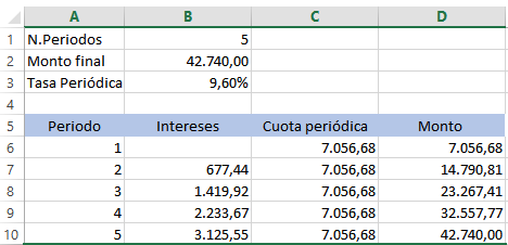 2. La vida útil de un equipo industrial de GECESA, que acaba de ser adquirido por una compañía es de 5 años. Con el fin de reemplazarlo al final de ese tiempo, la empresa establece un fondo de amortización efectuará depósitos anuales en una cuenta bancaria que paga el 9.6%. Si se estima que el equipo costará $42, 740 dólares cual será el valor del depósito construye una tabla del fondo