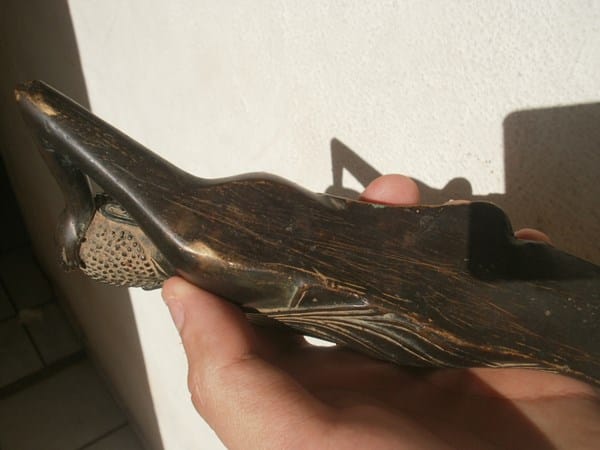 Me las dio antes de morir, según son antiguas. Parece que son de bronce. Son 3. Contaba que se las dio mi tío que vive en E.U., y a él un amigo militar, quien las trajo de Irak.