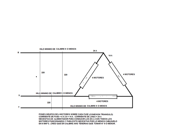 Tengo 12 motres de 3.5 amp, 220 voltios, voltaje trifásico, cable alambrado nro 12, esta bien el cable a usar, ¿he sacado la línea de un cable nro 10?