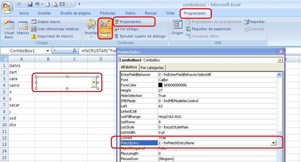 Selecciona tu combo, entra a la ficha Programador, presiona el icono Modo diseño, selecciona Propiedades, y en la ventana de propiedades Selecciona en la propiedad MatchEntry la opción: 2 - fmMatchEntryNone. Después cierra la ventana propiedades.
