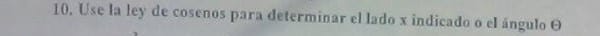 Matemáticas NiNac Valencia el 23 abr. 15 Use la ley de cosenos y determine el lado X Ley de cosenos me faltaría la 6 y 8 q la pondré en otra pregunta Seguir Siguiendo Dejar de seguir