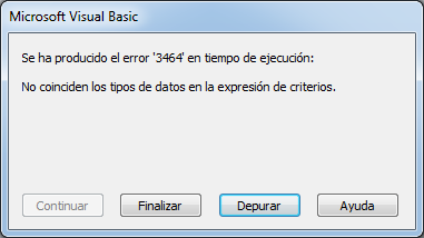 Sucede que al presionar el botón "GENERAR" en vez de la MsgBox aparece el siguiente mensaje de error: