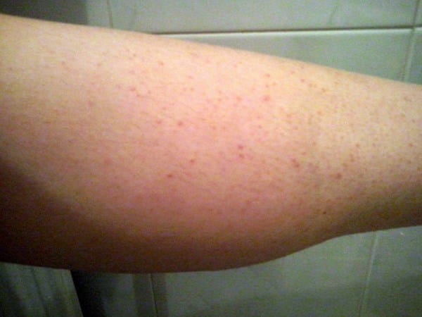 desde hace varios años tengo las piernas llenas de granitos rojos, como si los poros estuvieran permanentemente irritados. He probado con varios tipos de depilación, me exfolio a menudo incluso utilizo cremas exfoliantes, y sigue igual, el problema no es que se irrite la piel después de la depilación, sino que no desaparece. Además tengo múltiples pelitos enquistados. Lo raro es que solo me pasa en media pierna (de rodilla para abajo). Hay días en los que la piel parece estar más calmada, como hoy, y se nota menos pero igualmente se ve (siento la calidad de la imagen es hecha con el móvil).