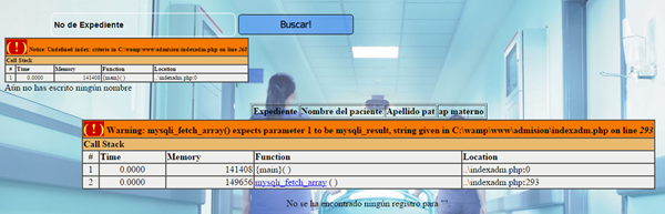 <?php $n=0; $result=""; $criterio = $_POST['criterio']; $primer = substr($criterio,0,1); if ($criterio == "" or $primer==" ") { echo "Aún no has escrito ningún nombre"; } else { echo "<h4>Resultados para \"$criterio\".</h4>"; $sql="select * from registro where noexp like '%$criterio%'"; $result=mysqli_query($db, $sql); } ?> <div align="center"> <table border="1" > <thead> <tr> <th>Expediente</th> <th>Nombre del paciente</th> <th>Apellido pat</th> <th>ap materno</th> </thead> <tbody> <?php while ($row=mysqli_fetch_array($result)) { $n++;?> <tr> <td><?php echo $row['noexp']; ?></td> <td><?php echo $row['nombres']; ?></td> <td><?php echo $row['appaterno']; ?></td> <td><?php echo $row['apmaterno']; ?></td> </tr> <?php } if ($n==0) { echo "<p>No se ha encontrado ningún registro para \"$criterio\".";}?> </tbody> </table> </div>