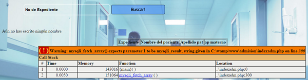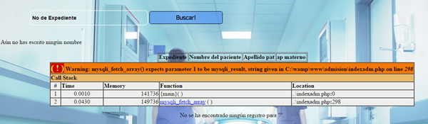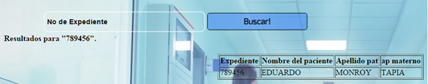al escribir el no de expediente y darle el boton buscar me muestra bien los datos