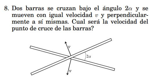 Dos barras se cruzan bajo el ángulo 2α y se mueven con igual velocidad v y perpendicularmente así mismas.