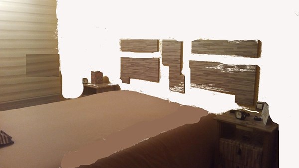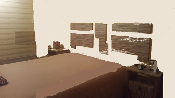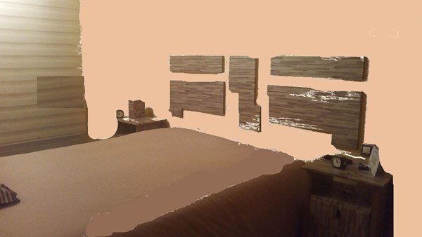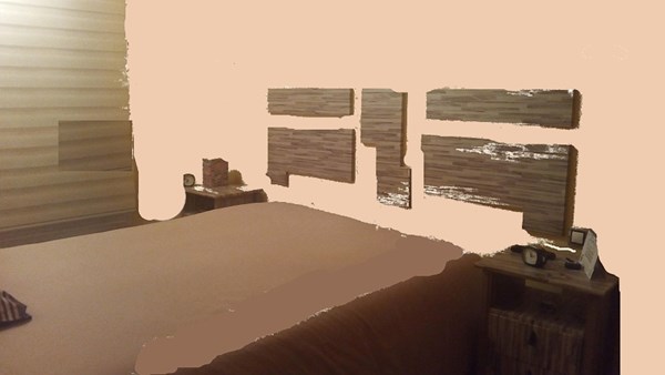 Lo ideal seria que pintaras la pared principal en color verde y las otras 3 en beige, asi el punto central seria tu recamara, que resta decir tiene un diseño muy cool.