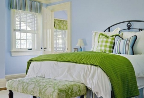 Sinceramente esta es la combinación que más me gusta, ya que el Verde le da un toque de alegria y relajacion, en cuanto al beige te dara la sensación de calidez y confort ideal para un lugar de descanso. Pienso que este seria el mas apropiado para ti por el color de tu recamara asi como de tu persiana.