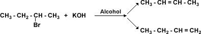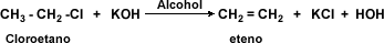 Reacciones de eliminación: Son las reacciones en las que se separan dos átomos o grupos de átomos de una molécula, sin que se produzca al mismo tiempo la penetración de nuevos átomos o grupos atómicos. La reacción de eliminación más importante que se produce con los haluros de alquilo es en la que éste, reacciona con la potasa alcohólica para dar un alqueno.