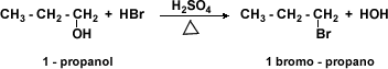 Tratando un alcohol con un hidrácido: Es un método que permite la preparación de bromuros y yoduros. Para preparar los bromuros de alquilo se calienta el alcohol con ácido bromhídrico concentrado en presencia de ácido sulfúrico. El mejor rendimiento se obtiene a partir de losalcoholes primarios
