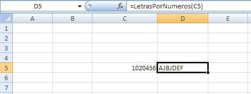 Como podría hacer un código que al escribir un numero en una celda en la otra me lo cambie por letras, me explico, a cada numero entero incluyendo el cero le asigne una letra. Del 0 al 9 de la A a la J.. O sea que si escribo 111 me coloque AAA, si coloco 123456 en la otra celda me coloque ABCDEF.