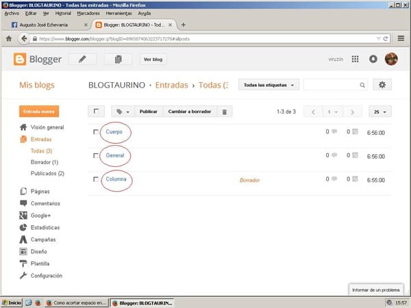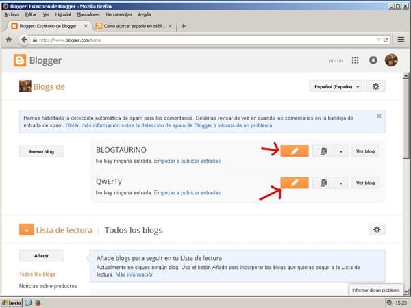 Cuando entra en su blog saldrán los blogs que tenga en mi caso salen dos, en su caso saldrá uno llamado ibertauro.