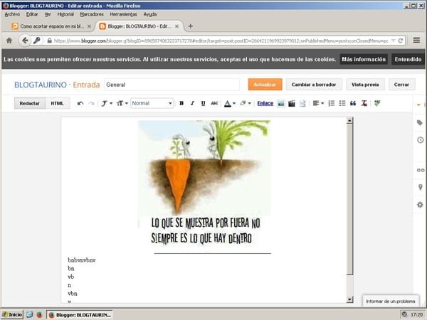 Por supuesto guardando antes de la edición el blog entero por si ahí que volver atrás.