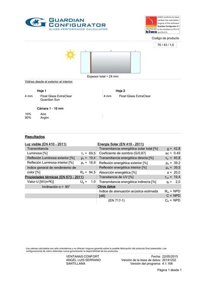 Tienes toda la razón, me doy cuenta de que he hablado con un fabricante de vidrio de Guardian, pensando, en mi ignorancia, que era la fuente, pero no creas que he hablado 5 min. solamente, sino unos 30 y le he preguntado entre otros, por el Guardian Sun bajo emisivo con control solar y me ha hablado del Guardian Sun ( de su propia boca) , por eso no me cuadraban las respuestas que me daba frente a lo que yo ya sabía.