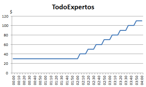 - Grafique la función en tiempo contra costo en un dominio de 4 horas.