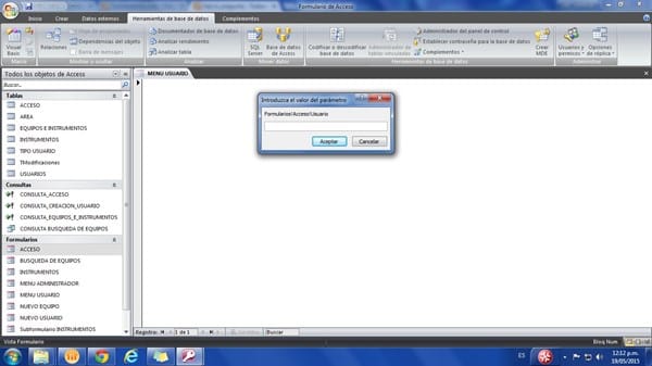 Tengo una Base de datos con usuario y contraseña pero al momento de abrir el formulario de usuario me dice introduzca el valor del parámetro este es el código que estoy usando: