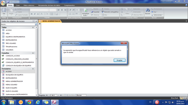 En el momento de cerrar el formulario de acceso de mi base de datos el me dirige al formulario de menú del perfil pero siempre me arroja este error