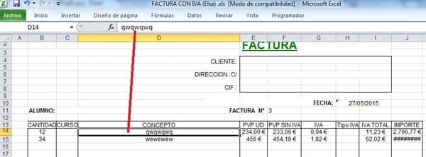 Hola Elsa, funciona casi perfecto, solo en la línea primera en concepto lo deja en blanco, me lo puedes revisar .Te pongo una captura, cuanto puedas y tengas tiempo bastante me estas ayudando ya.