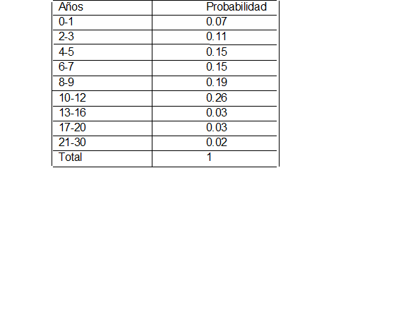 Realiza una gráfica de barras con estos datos; la escala del eje “x”, correspondería a los años y la escala del eje “y” a las probabilidades.