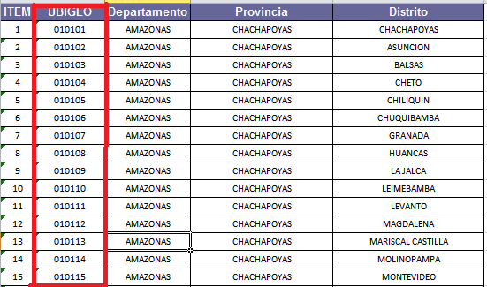 Como pueden ver son 6 dígitos. Amazonas (01), Chachapoyas(01), Chachapoyas(01).