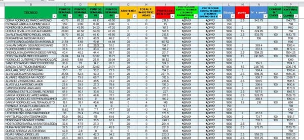 Ahora quiero quiero que en el LISTBOX2. Me aparezcan los datos de ASISTENCIAS hasta PROYECCIÓN FINAL en el LISTBOX 2.