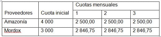 La empresa Dunas S.A. Ha convocado a un concurso de precios para adquirir una camioneta al crédito. A la convocatoria han respondido los proveedores “Amazonía” y “Mordox” cuyas ofertas están resumidas en el siguiente cuadro comparativo de precios:
