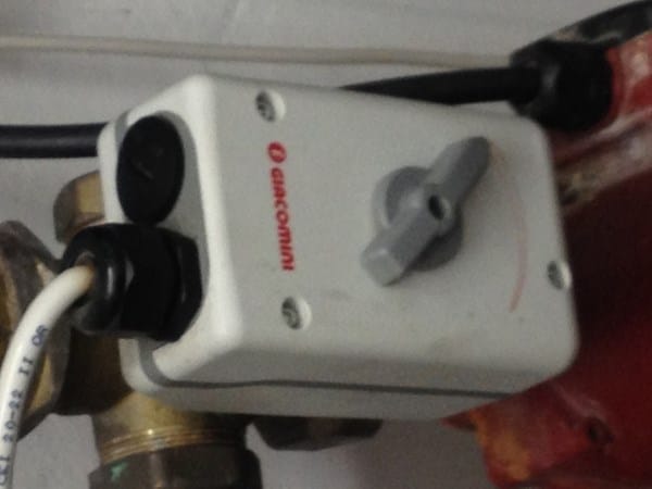 Tengo una caldera que da servicio a radiadores en el piso de arriba y a suelo radiante en el de abajo. Ante todo pido disculpas porque no soy nada experto en el tema. Siempre ha ido bien, excepto alguna vez en verano que se atascaba alguna electroválvula y con un par de martillazos en marcha el resto del invierno. Pero desde hace unos días, el suelo radiante da problemas. Todo parece funcionar bien, se oye el ruido del agua, la electroválvula (pieza roja de la foto) suena, todo bien, pero el agua no pasa de ahí, y los termómetros del suelo radiante a 18 grados. He observado que la clave está en la pieza blanca que pongo en las fotos que perdón por mi ignorancia pero no tengo idea de que es. Ella sola se pone a veces con esa especie de flecha gris que tiene en el lado contrario de donde se ve en la foto, y no funciona por mucho que haga. De repente a la mañana siguiente intentas ponerlo, la flecha gris está en la posición actual y entonces todo funciona bien.