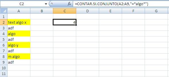 Agradecería me ayuden con esta función u otra que cuente dentro de un rango considerando una palabra dentro de una frase, por ejemplo, dentro de un rango tengo varios textos, pero, solo se repiten una palabra en ciertas celdas,
