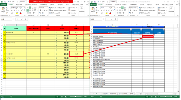 Tengo 2 archivos en excel uno es de viaticos y el otro es de bancos, en el de viaticos obtengo un total el cual quiero que se acumulen los gastos en el archivo de bancos, de manera que se vayan apilando uno bajo el otro, les dejo una imagen de los archivos para que me puedan ayudar, ya sea con formula o macro. Gracias por su tiempo.