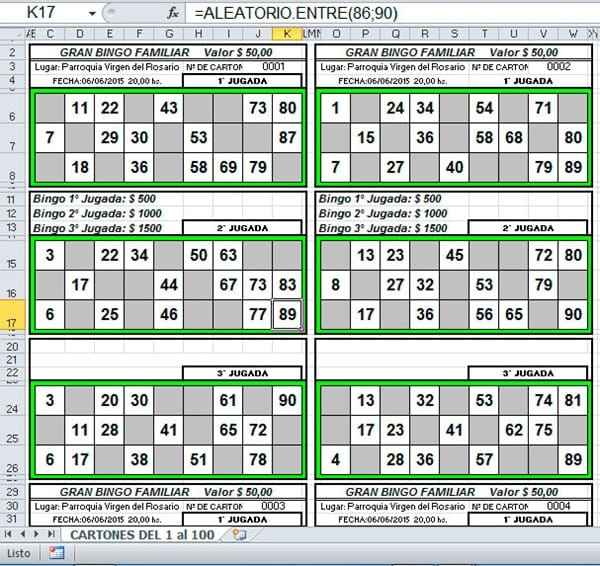¿Entonces quieres que te arme una macro que genere cada uno de los cartones?
