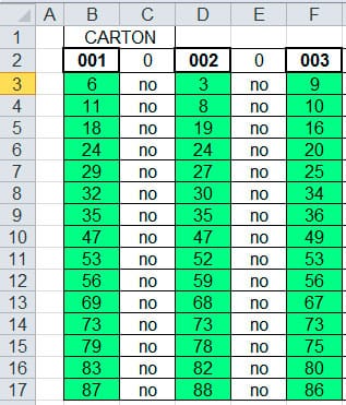 Ahora tu ejemplo tampoco es claro, los número del cartón 001, de la imagen 2 no coinciden con los números de la imagen 1.