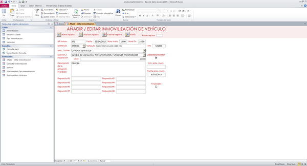 Tengo un formulario en el que introduzco los datos del mantenimiento de los vehículos de mi empresa.