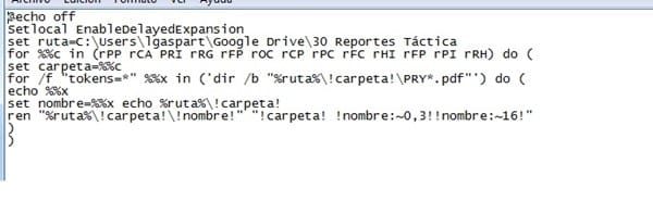 set ruta=C:\Users\lgaspart\Google Drive\30 Reportes Táctica