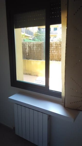 Pinte con una de esas pinturas con cristalitos que supongo que algo haría y después de hacer una cata con una amigo albañil, comprobamos que debajo de las ventanas existe una pequeña cámara de aire pero en los laterales de las ventanas donde en plano lo indico con una (X), hay forjado y este no tiene cámara por lo que pensamos que la minima que hay es insuficiente.