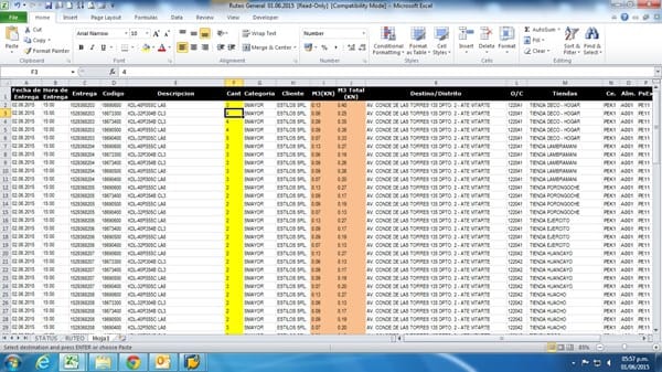 Si pongo de ejemplo para la segunda fila, como me piden 3 unidades, inserto dos filas más y pongo las cantidades a uno, (Ver foto) resaltado en rojo. Y así tendría que trabajar todo el archivo.