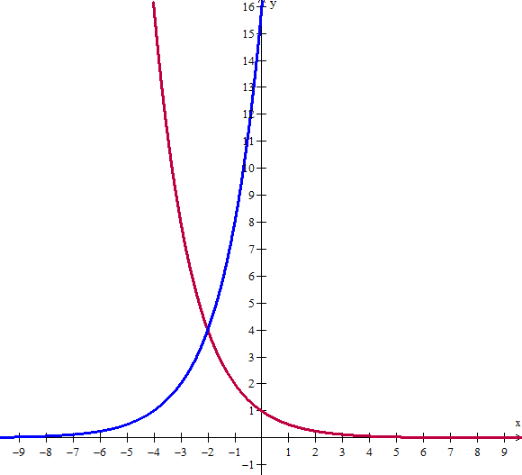 b) f(x) = 2^(x+4)