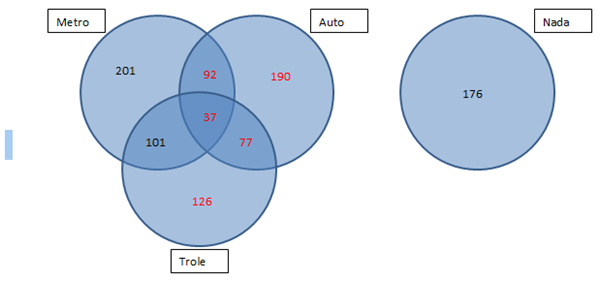 a) Cuantos utilizan metro o trolebús pero no autobús