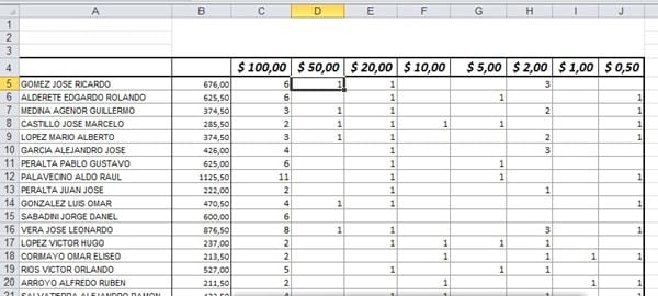 Necesito planilla para calcular el cambio de billetes