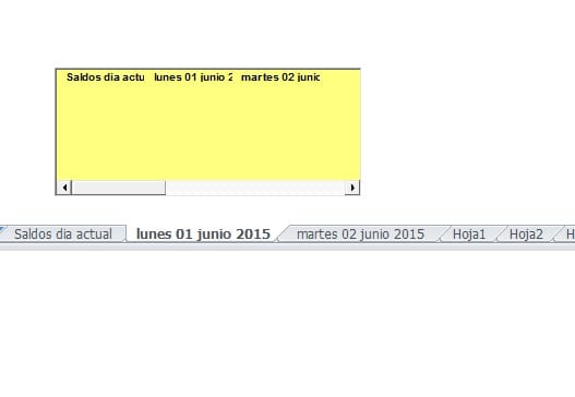 Este me arroja los nombres de las hojas que se encuentras a la derecha de la hoja "Saldos día actual". Pero el listbox me los lista en forma vertical en lista hacia abajo.